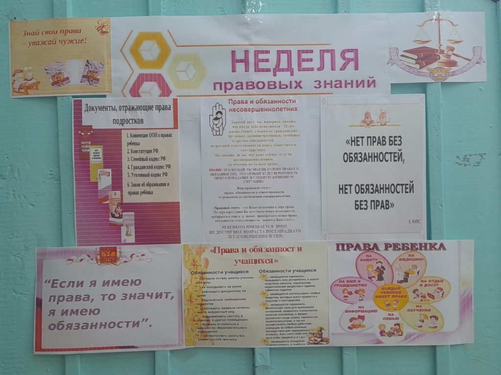 Без рубрики Неделя правовых знаний 01.03.2023 / С 27 февраля по 3 марта проводится неделя правовых знаний, оформлен стенд.