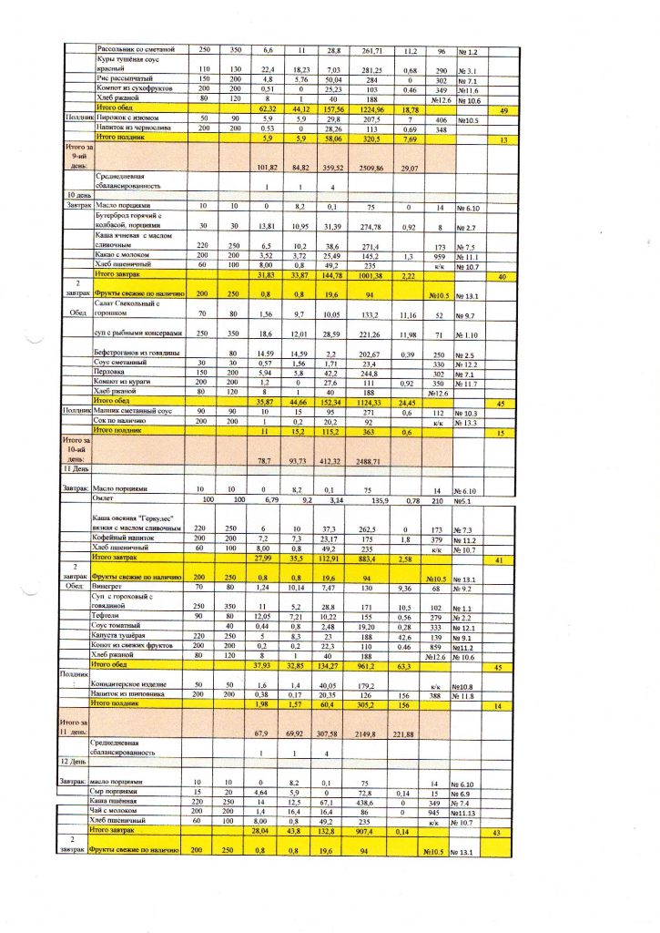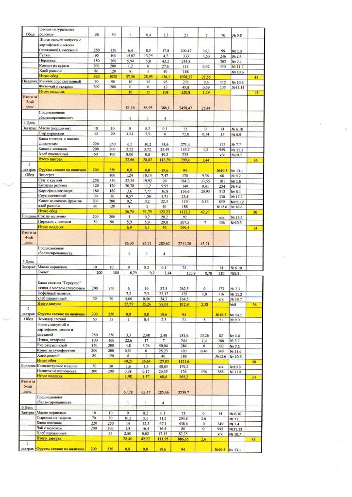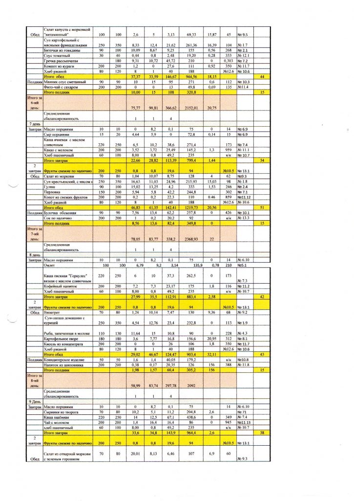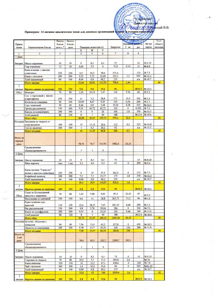 14 дневное примерное циклическое меню