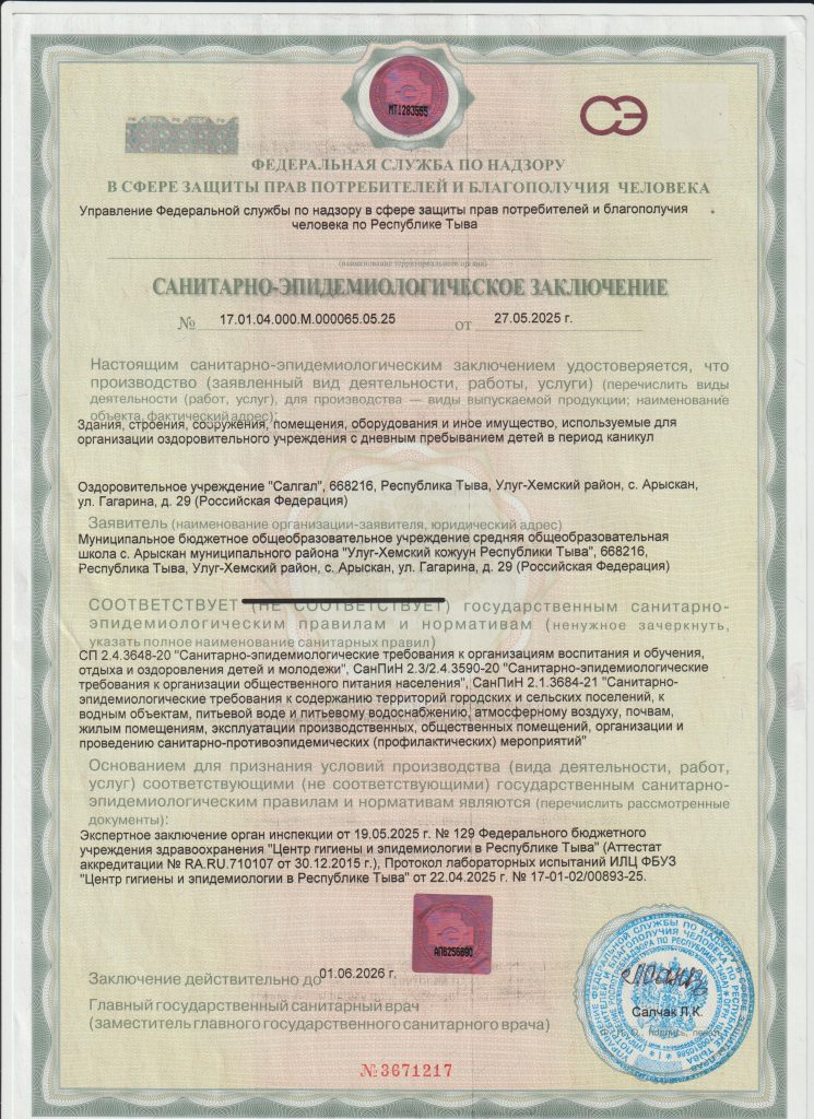 Санитарно-эпидемиологическое заключение 2025 год